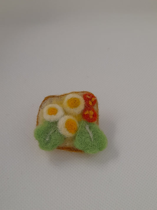 One of a kind needle felted hand made salad open sandwich brooch