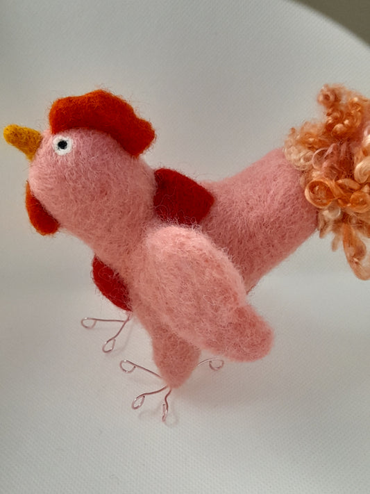 Handmade needle felted valentines chicken ornament